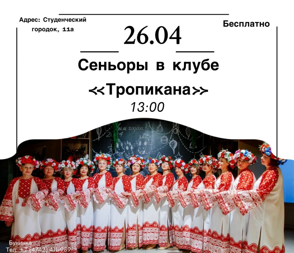 Приглашаем всех желающих на концертную программу танцевального коллектива «Сеньоры» из танцевального клуба «Тропикана» под руководством талантливого хореографа Елены Шмаковой.