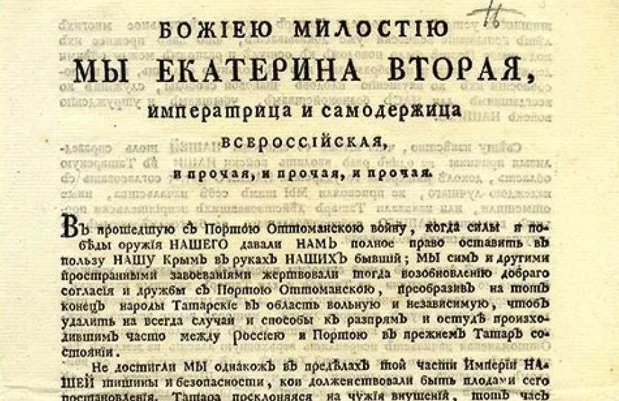 Высочайший Манифест «О принятии полуострова Крымского, острова Тамана и всей Кубанской стороны под Российскую Державу» (фрагмент)