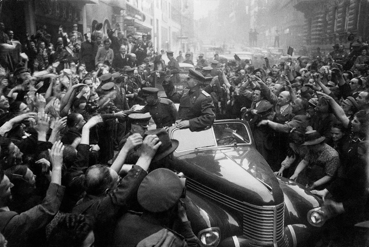 Население Праги приветствует танкистов Красной Армии, совершивших освободительный переход Берлин-Прага