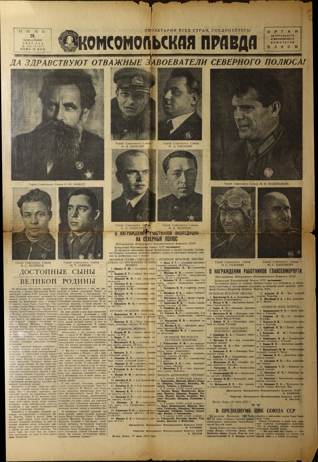 Водопьянов был награждён орденом Ленина. Более высокой награды быть не могло –